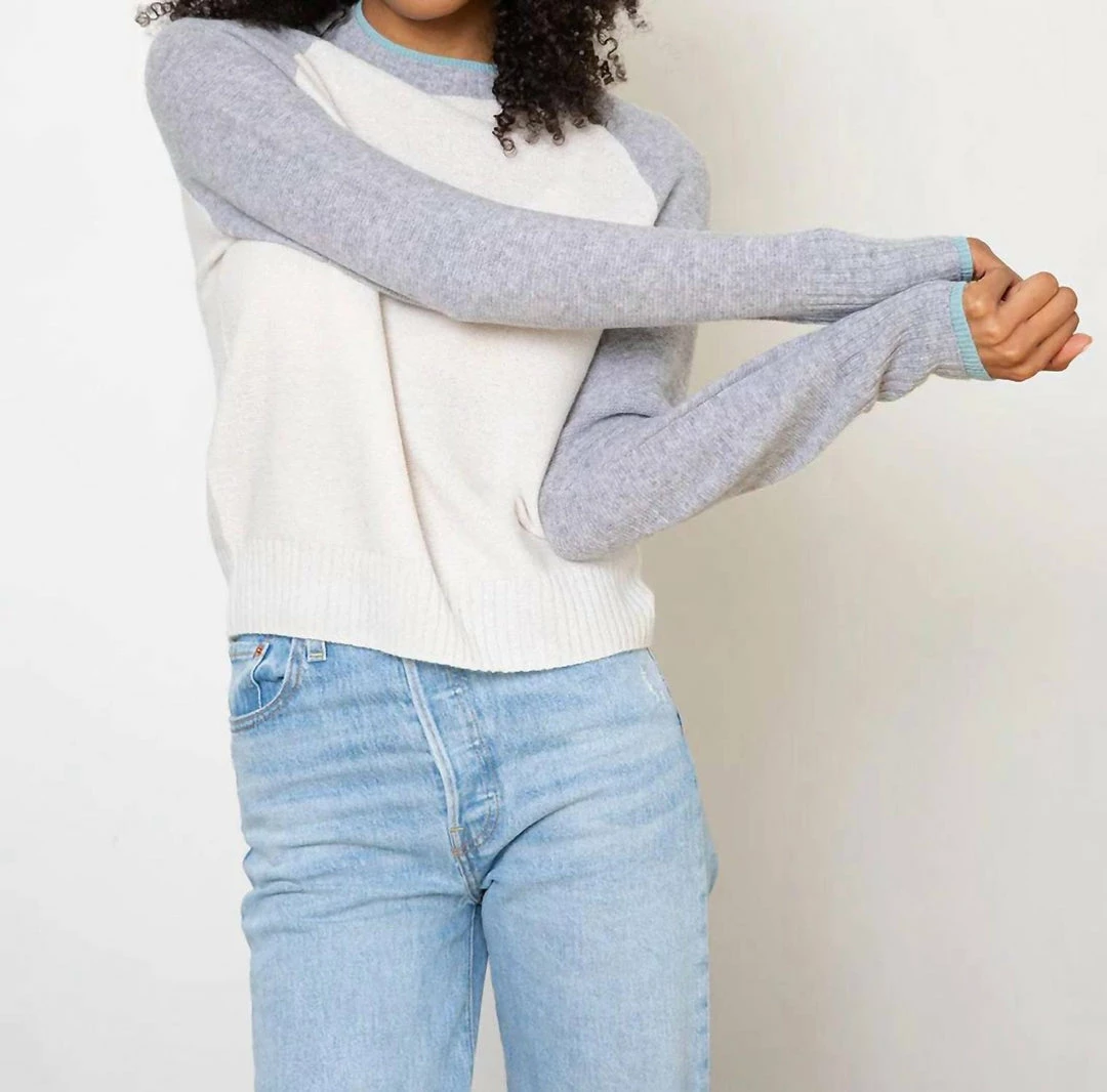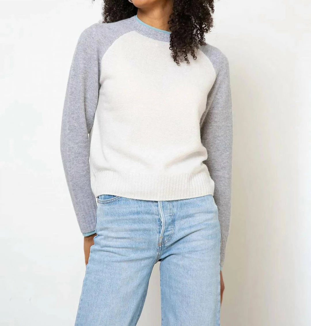 Classic raglan crew neck pullover accented with contrasting faux layered trims and finished with ribbed trims.in 9-gauge knitModel is 5’9″ wearing size SmallStraight fitFaux layered trims23″ length (size Small)Hand Wash Cold or Dry Clean Only