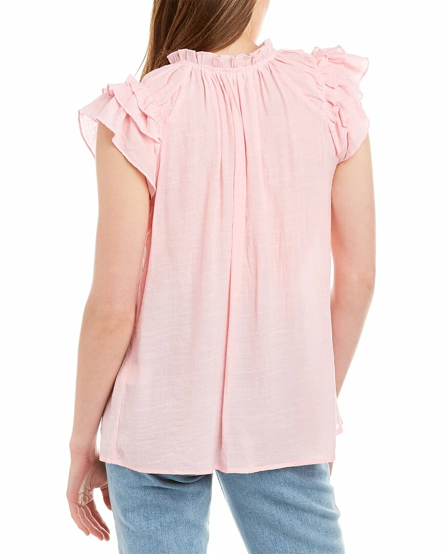 - Design Details – Split Neckline With Self-Tie Closure And Ruffle Trim