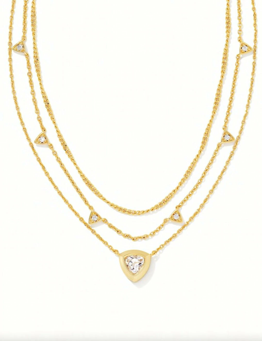 Metal – 14K Gold Plated Over BrassMaterial – White CrystalClosure – Lobster ClaspSize – 16″, 16.75″, 17.5″ Chains With 3″ Extender, , 0.41″L X 0.5″W