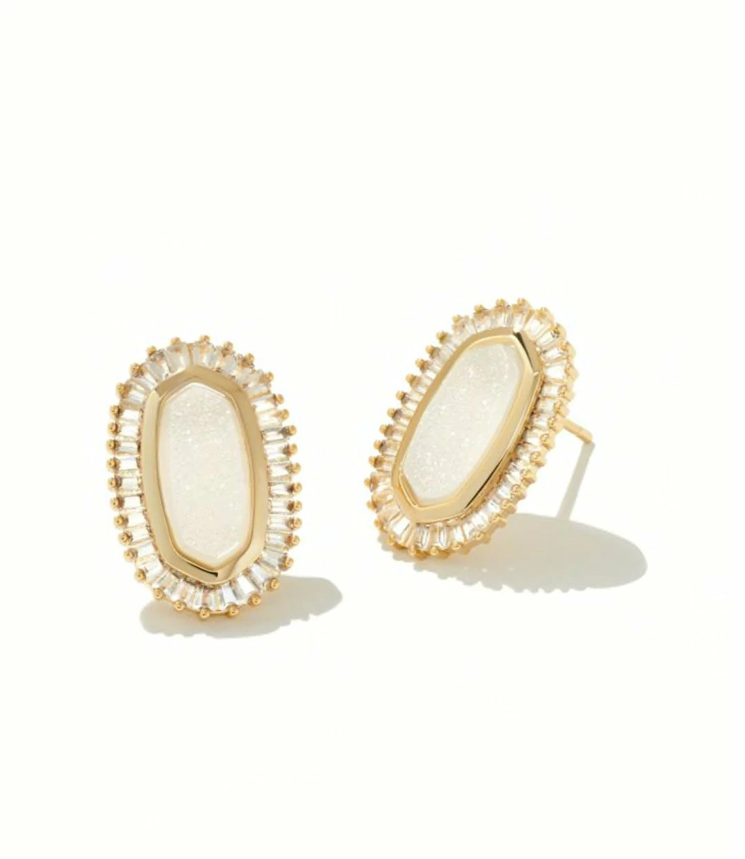 Metal – 14K Gold Plated Over BrassMaterial – DrusyClosure – EarpostSize – 0.79″L X 0.53″W