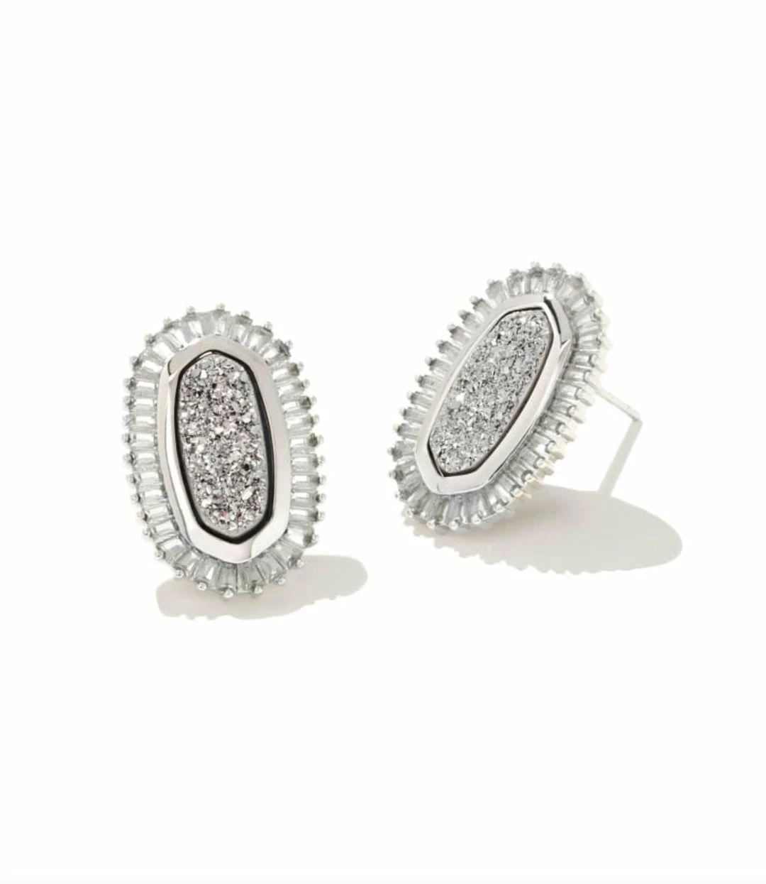 Metal – Rhodium Plated Over BrassMaterial – DrusyClosure – EarpostSize – 0.79″L X 0.53″WÂ