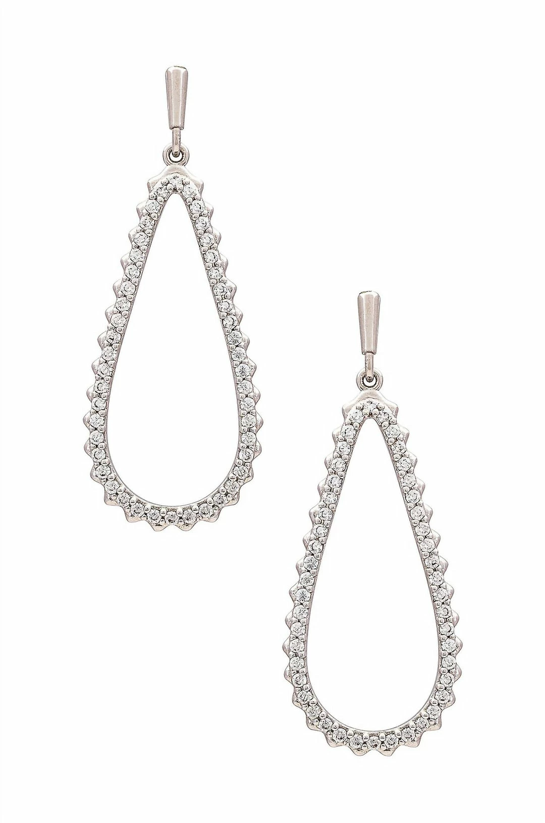Silver plated with crystal embellished trimImportedFish hook closureMeasures approx 3 cm dangling2.14″L X 0.8″W