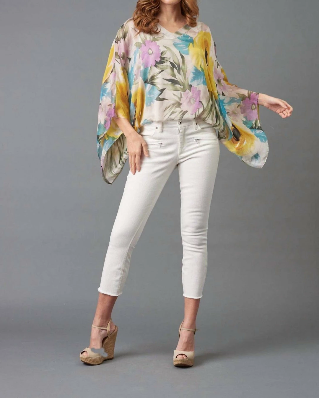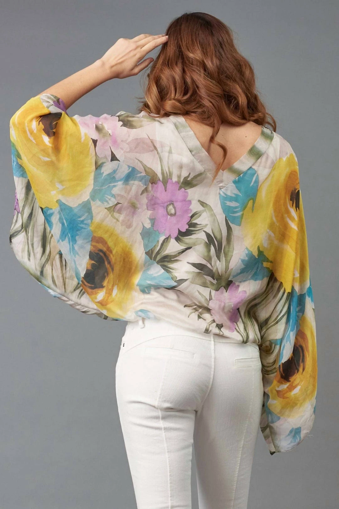 Length – 22″ from Shoulder��Self Fabric – Printed ChiffonBody is Lined in Jersey FabricOversized SilhouetteImportedModel is 5’10” and wearing size S100% PolyesterCareMachine wash cold, delicate. Lay flat to dry. Optional dry clean.