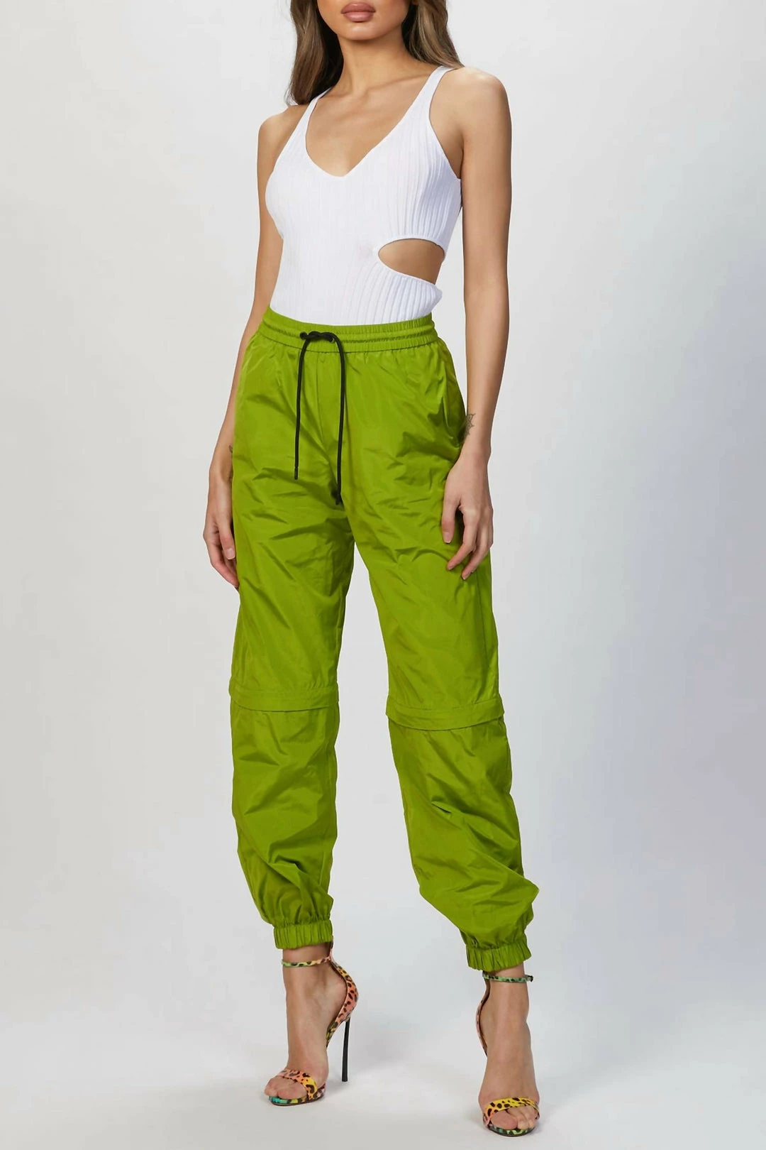 Made in Italy from green shell, its your choice how you wear these track pants. With detachable legs, you can wear them as pants or shorts. They have an elasticated drawstring waistband with loose legs that taper to elasticated cuffs. Wear yours with one of the label’s logo T-shirts and chunky sneakers.12″ Rise, 29.5″ Inseam, 10″ Leg openingColor – PistachioFabrication – 100% PolyesterCare – Dry cleanEuropean SizingAlyssa is wearing size EU 36
