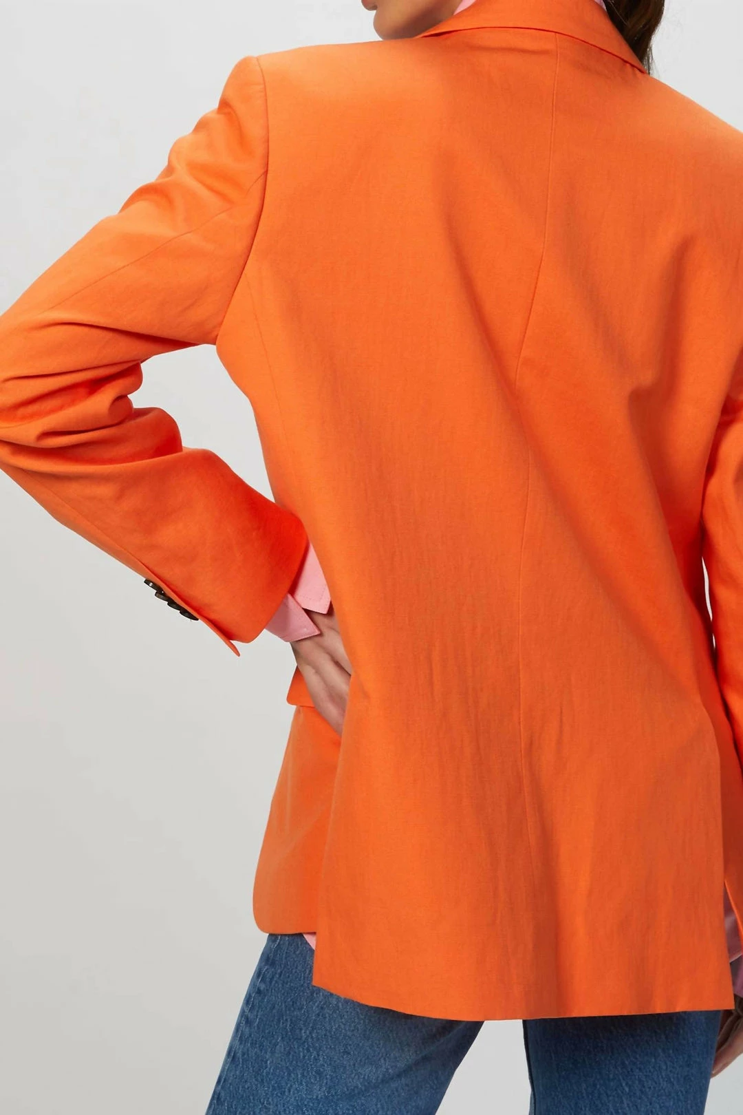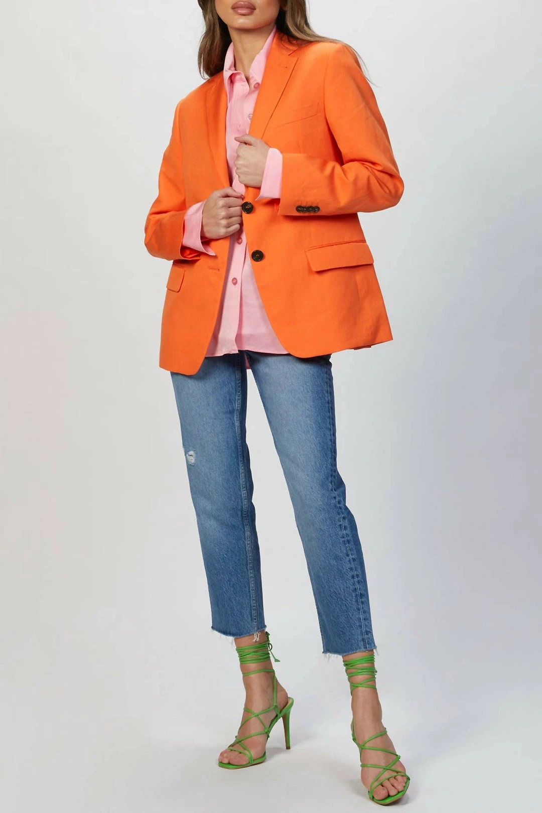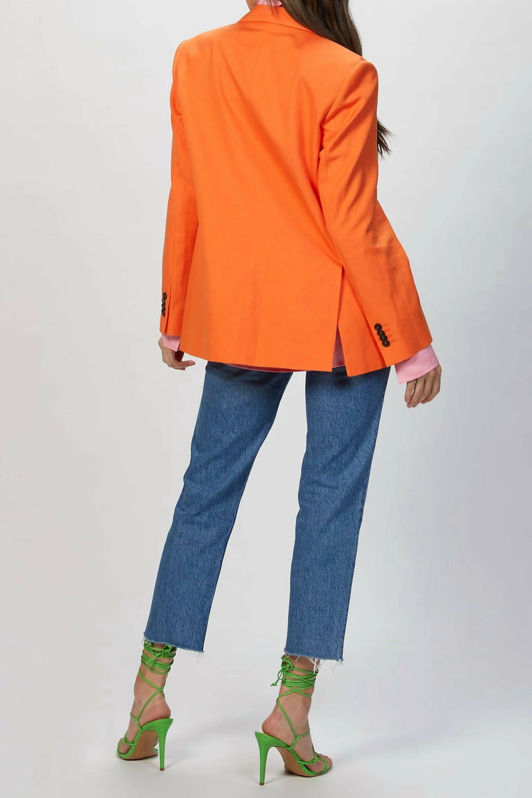 Handcrafted in Italy from a lightweight cotton-linen blend, this single-breasted blazer is the perfect pop of color for your warm weather wardrobe. It has padded shoulders and color-matched orange lining. Wear yours with the matching pants or casual denim.This item is part of a matching setFabrication – 65% Cotton, 35% Linen; Lining – 100% PolyesterCare – Dry cleanEuropean SizingAlyssa is wearing size EU 38