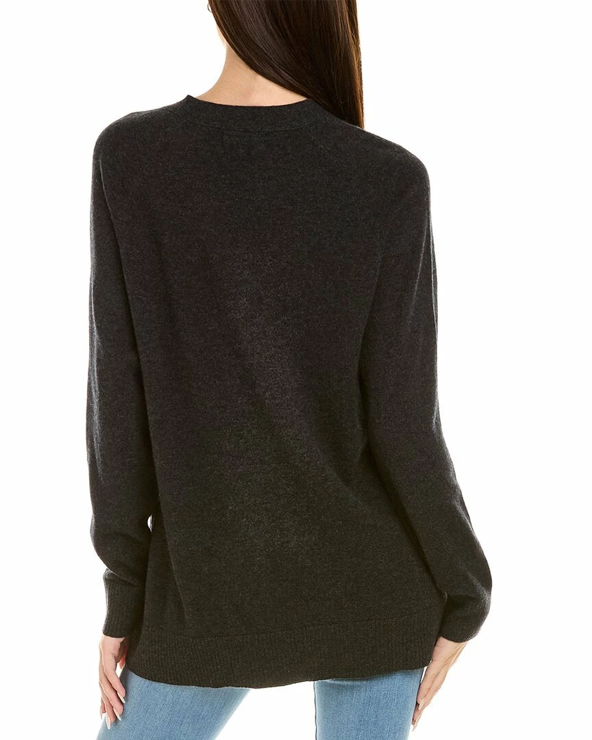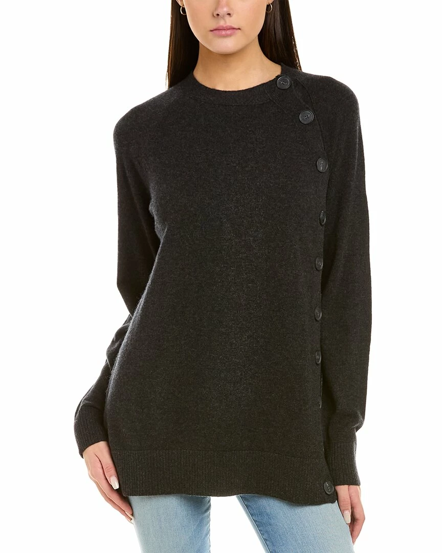 - Button Side Wool & Cashmere-Blend Sweater In Smoke With Raglan Sleeves And Ribbed Trim