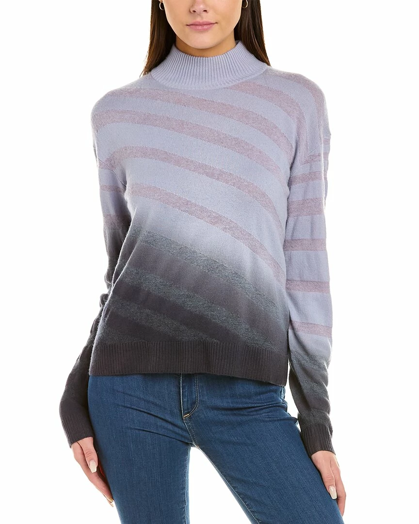 - Dip Dye Wool, Alpaca, Mohair, & Cashmere-Blend Sweater In Lavender With Turtleneck, Dropped-Shoulder Sleeves, Jacquard Stripe, And Ribbed Trim