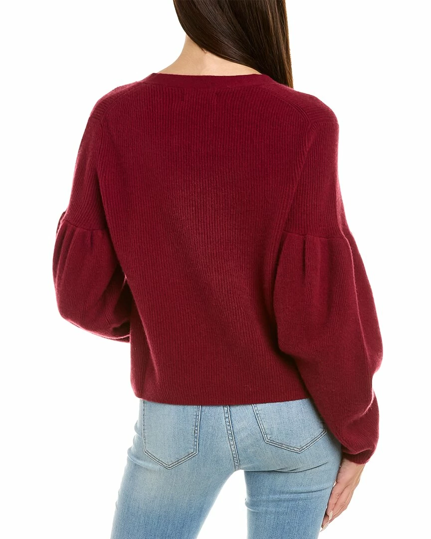 - Puff Sleeve Cashmere Cardigan In Bordeaux With Dropped-Shoulder Sleeves