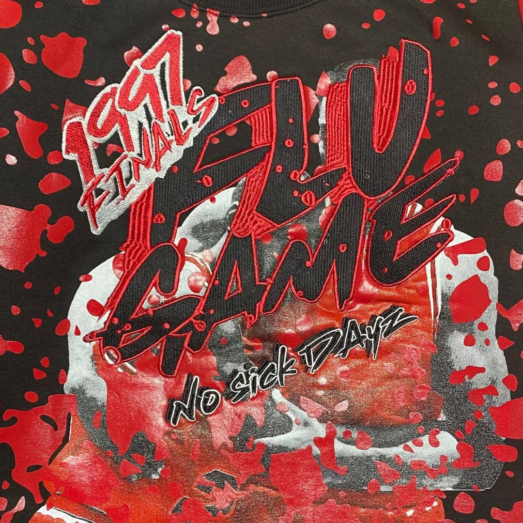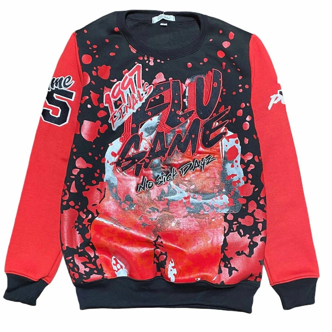 Retro Label Men’S 12S No Sick Days Flu Game Crewneck in Black/Red