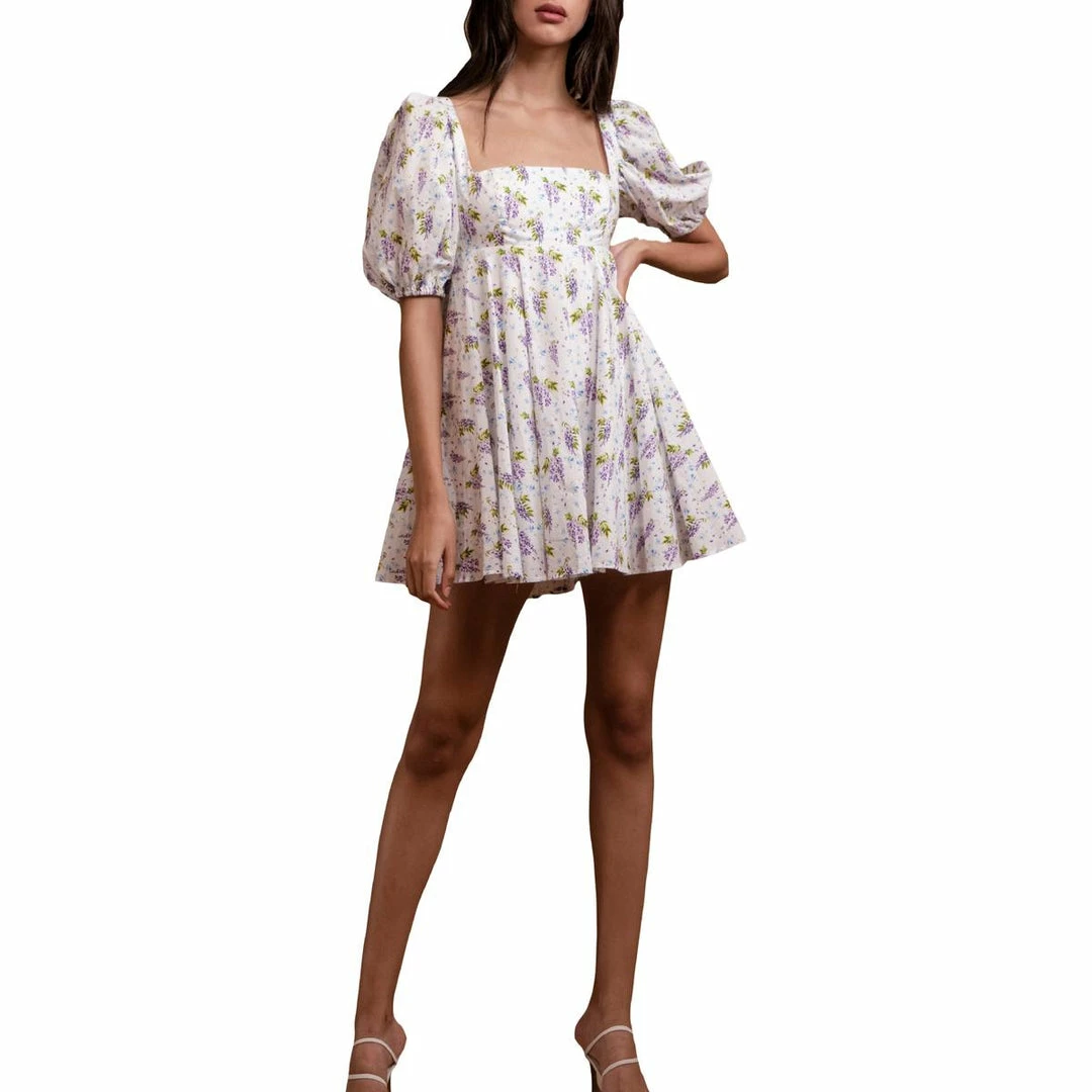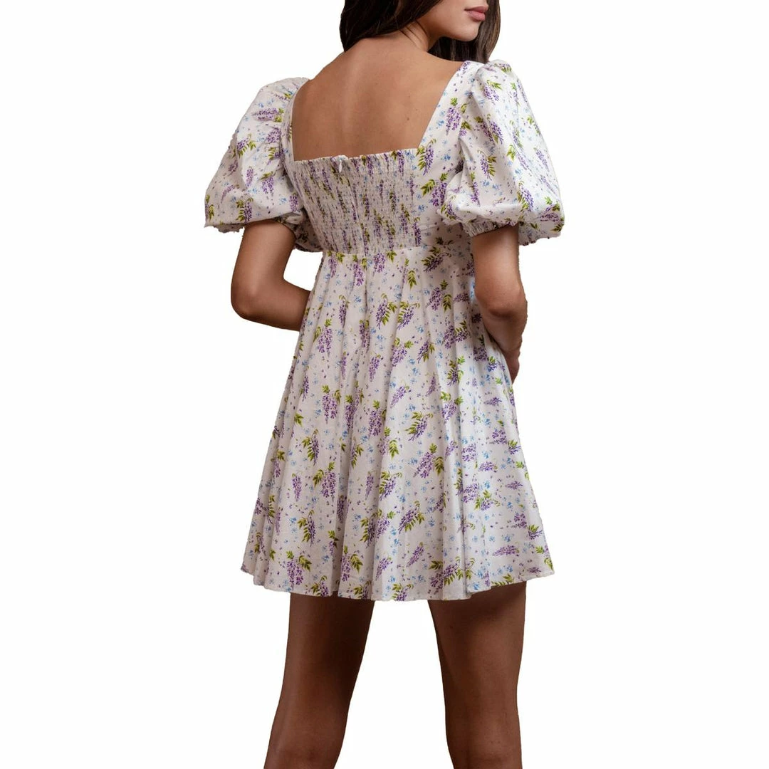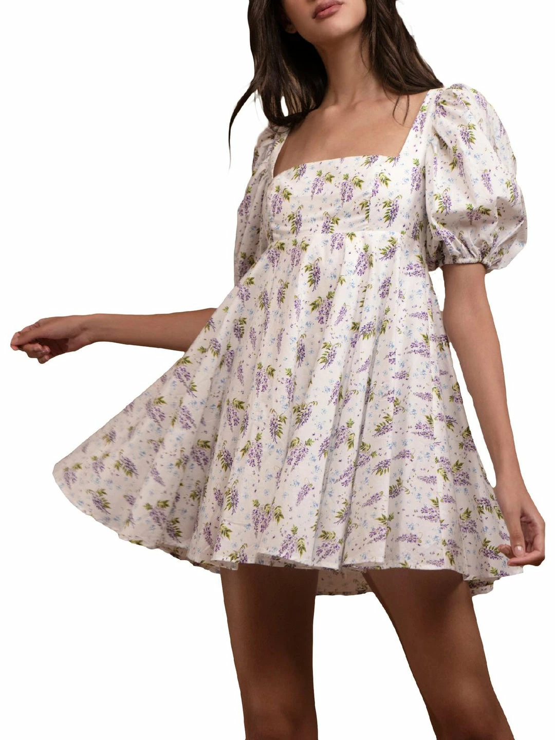 Feel effortlessly romantic in the Alyssa mini babydoll dress by Sau Lee. Crafted with a blend of cotton and rayon. This gorgeous mini dress features an allover botanical print, flirty puff sleeves, and a classic square neck. The breathable gauze fabric will have you feeling light and fresh everywhere you go. It’s leg baring mini length will make it perfect for that upcoming date or morning brunch. Back smocked panel. Hidden back zipper closure. This dress is guaranteed authentic.