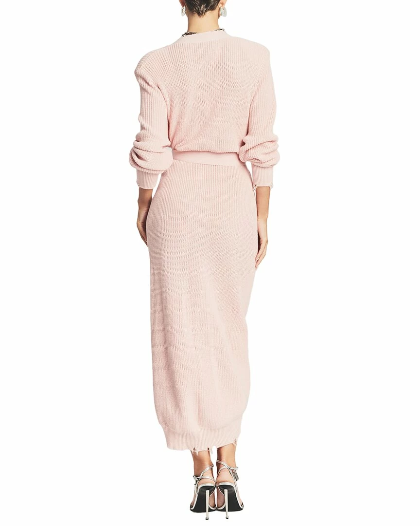 - Design Details – Long Cotton Knit Cardigan Dress, Padded Shoulders, Detachable Belt