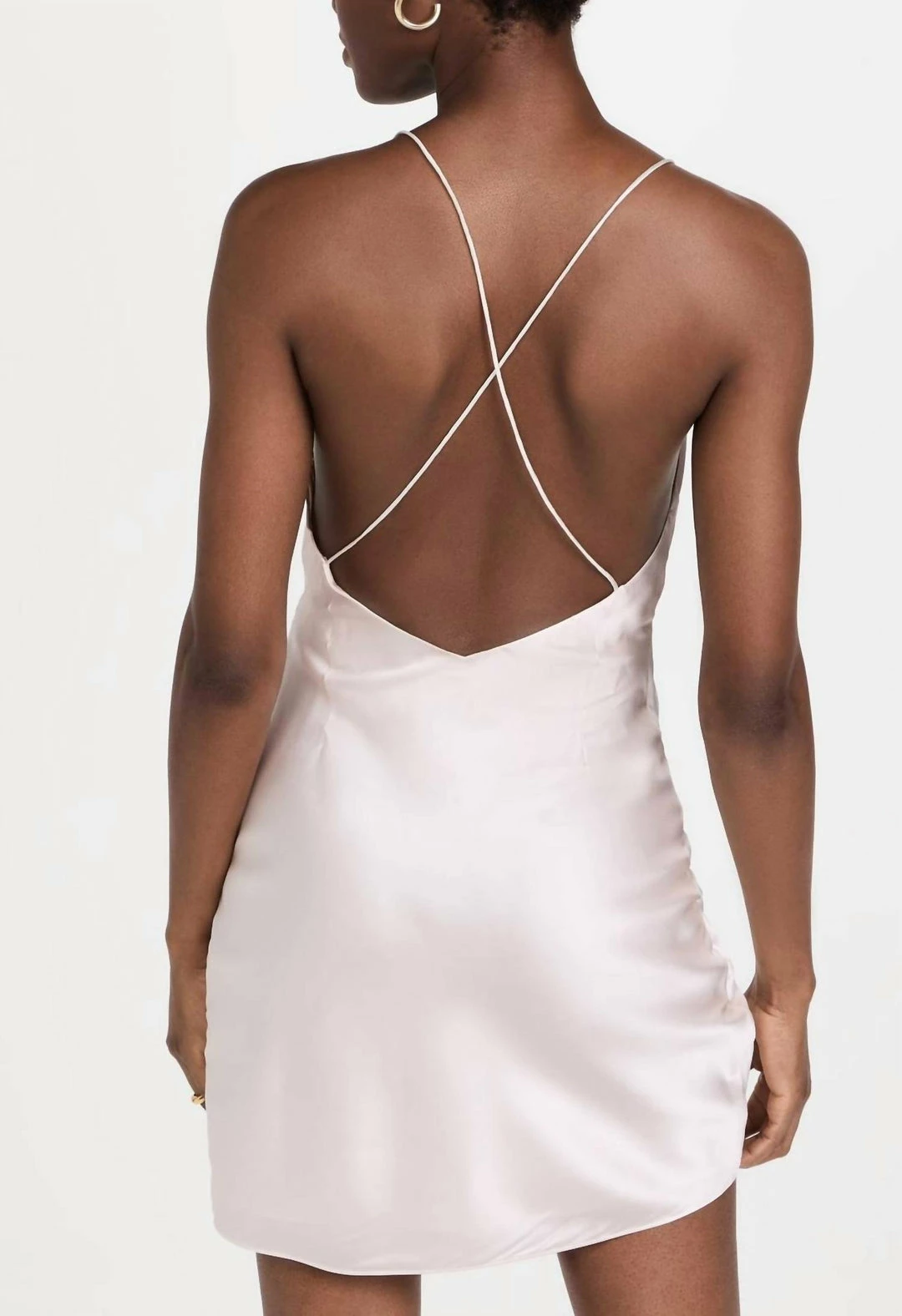 Pleating details. Open back. Surplice neck. Hidden zip at side