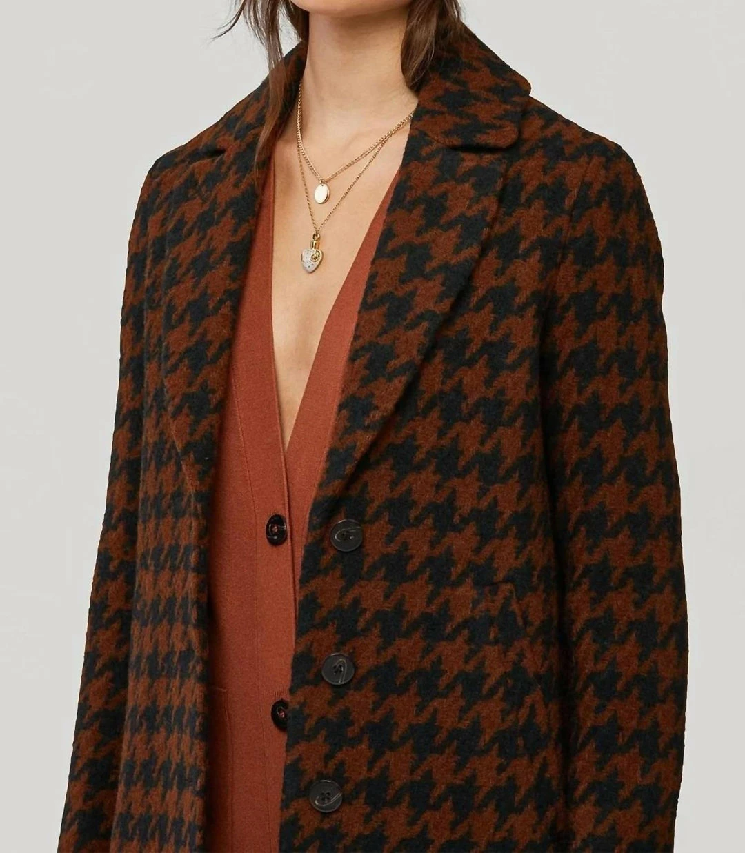 Soia&Kyo Houndstooth Pattern Rib Knit Hat in Russet – women