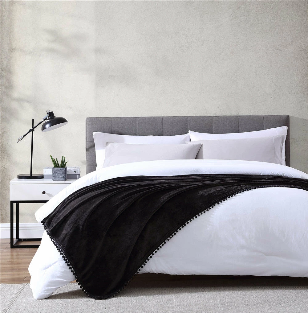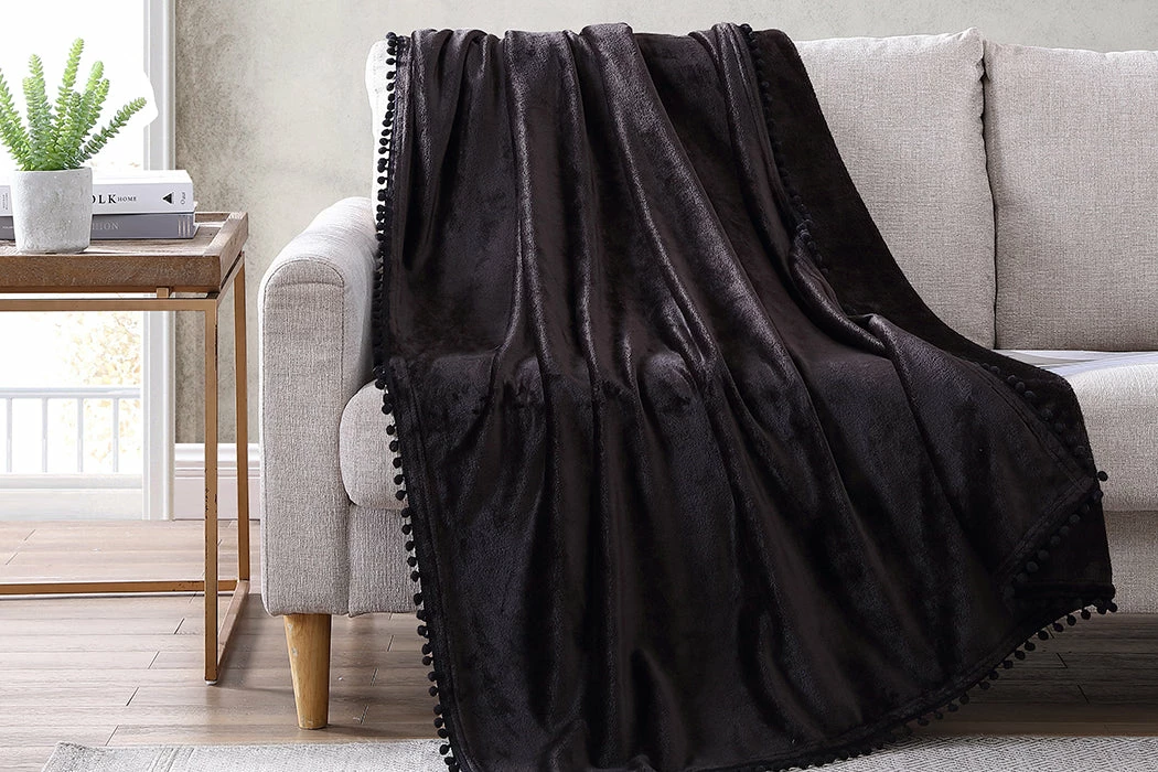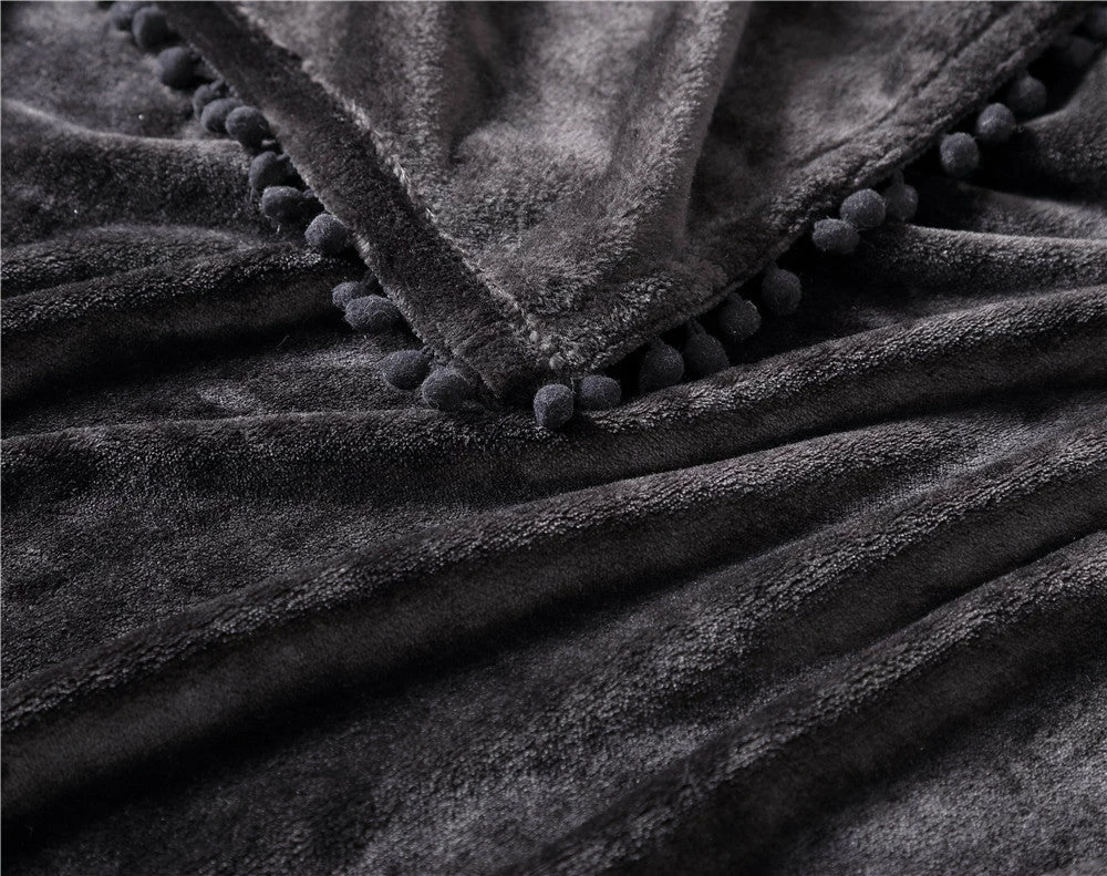 The Nesting Company Walnut Flannel Pompom 50″ x 70″ Throw