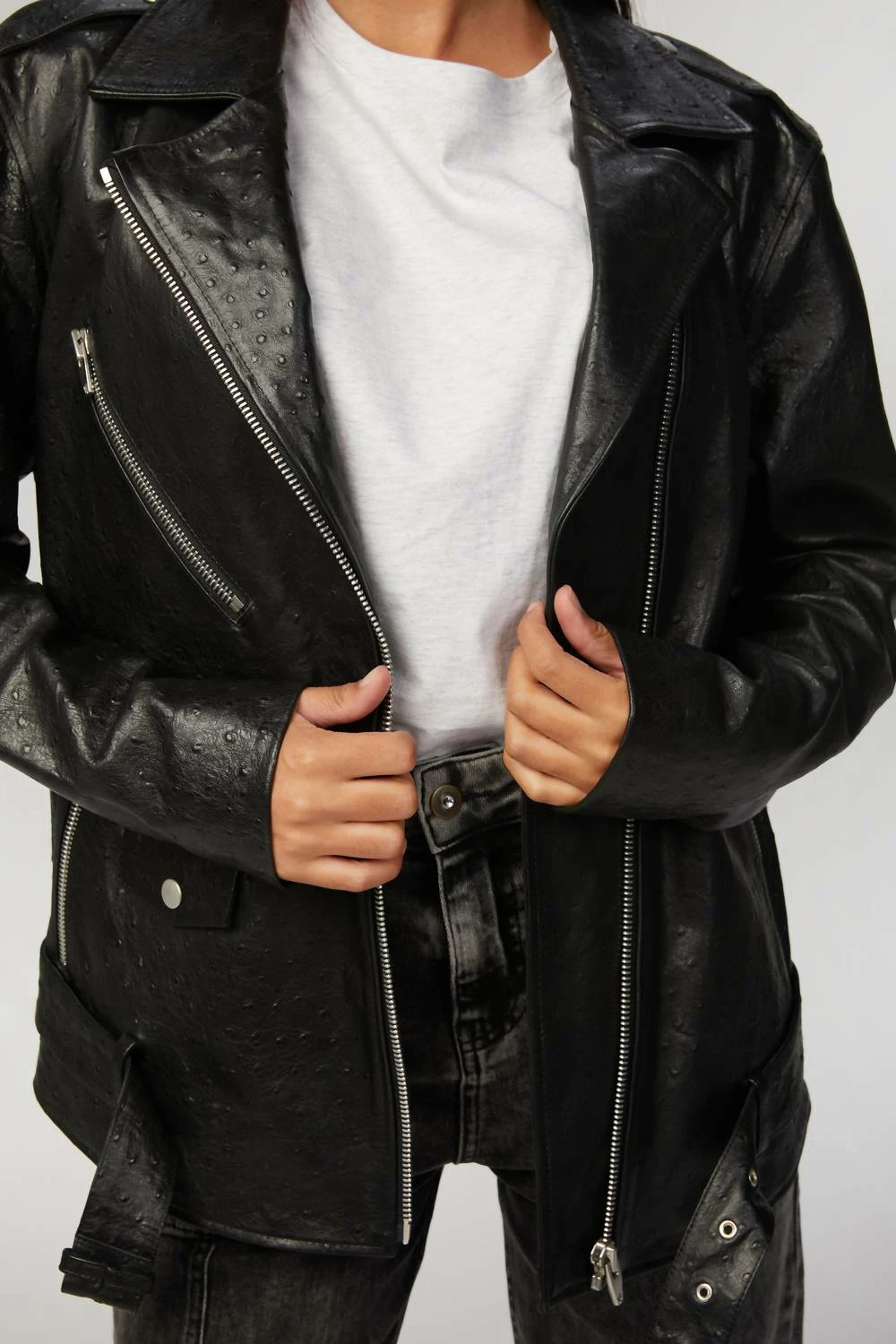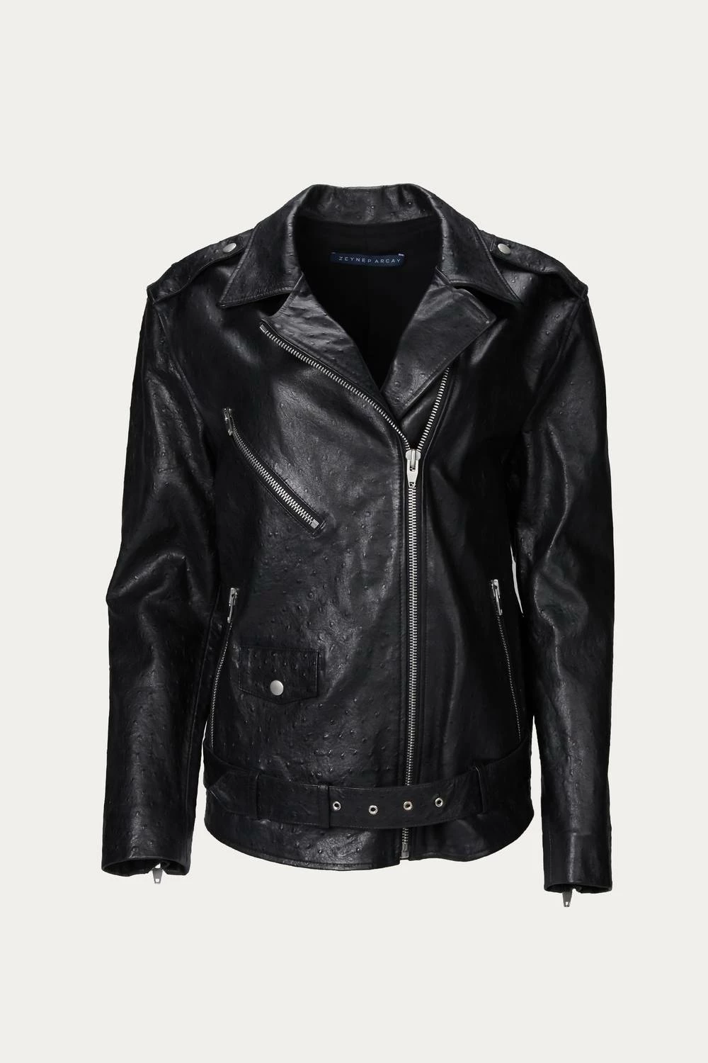This investment piece can be worn at all times of the day, for every season. Featuring exposed zippers, biker hardware and zipped cuffs, this genuine leather jacket will make you want to rev your engine.  Color – BlackFabrication – 100% Genuine lambskin; Lining – 100% SilkCare – Dry cleanUS SizingCheyenne is wearing size US 4