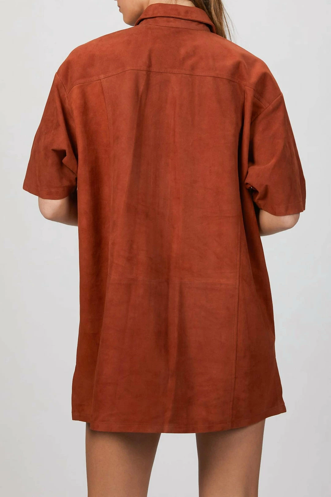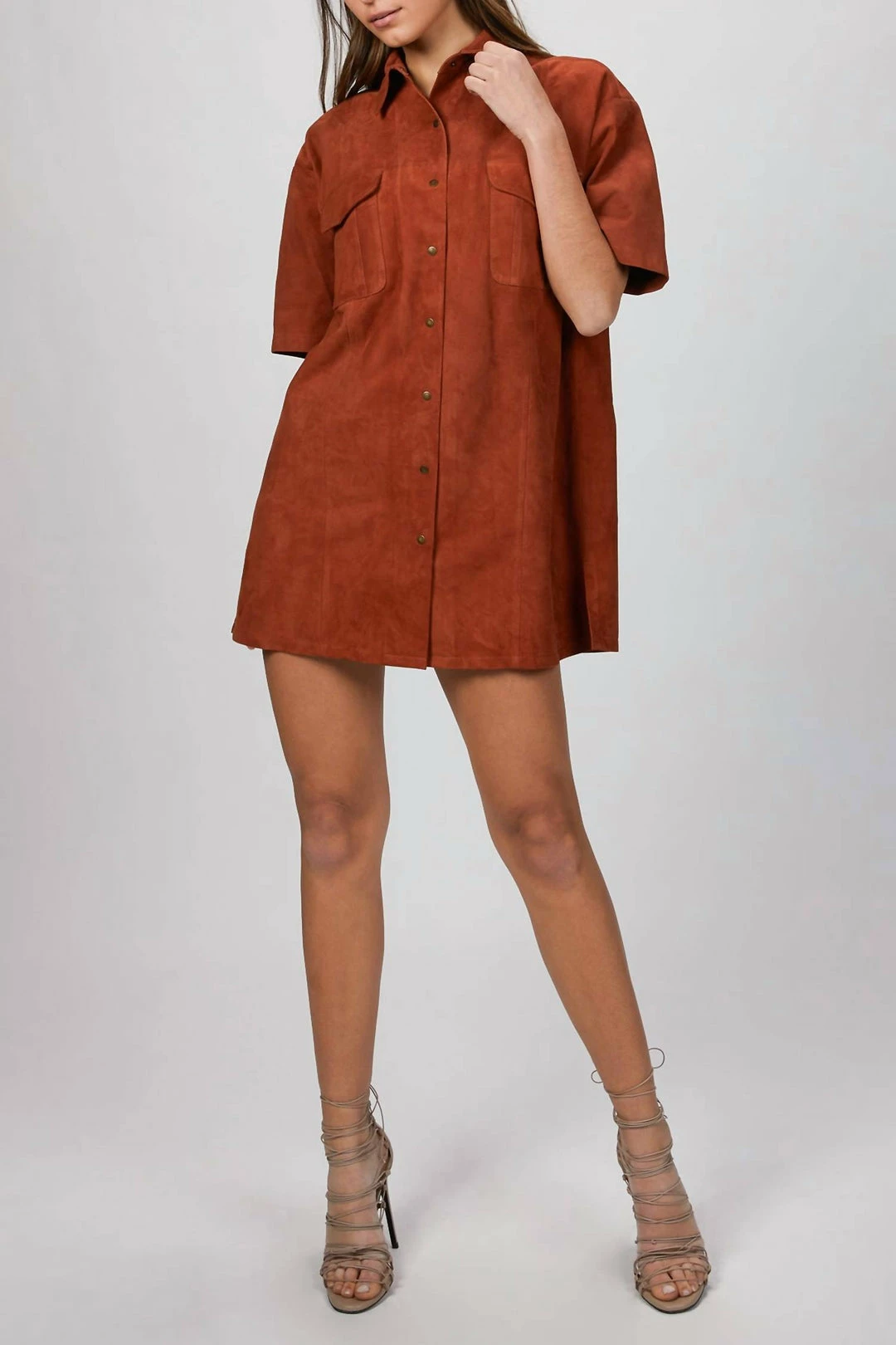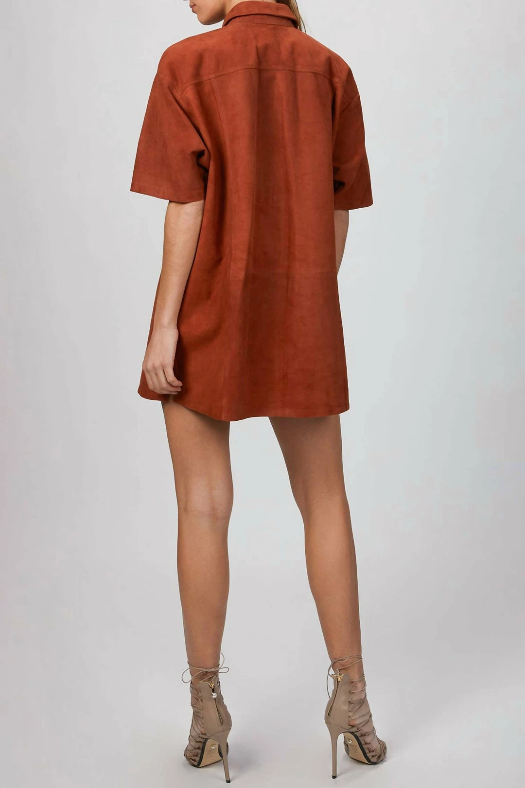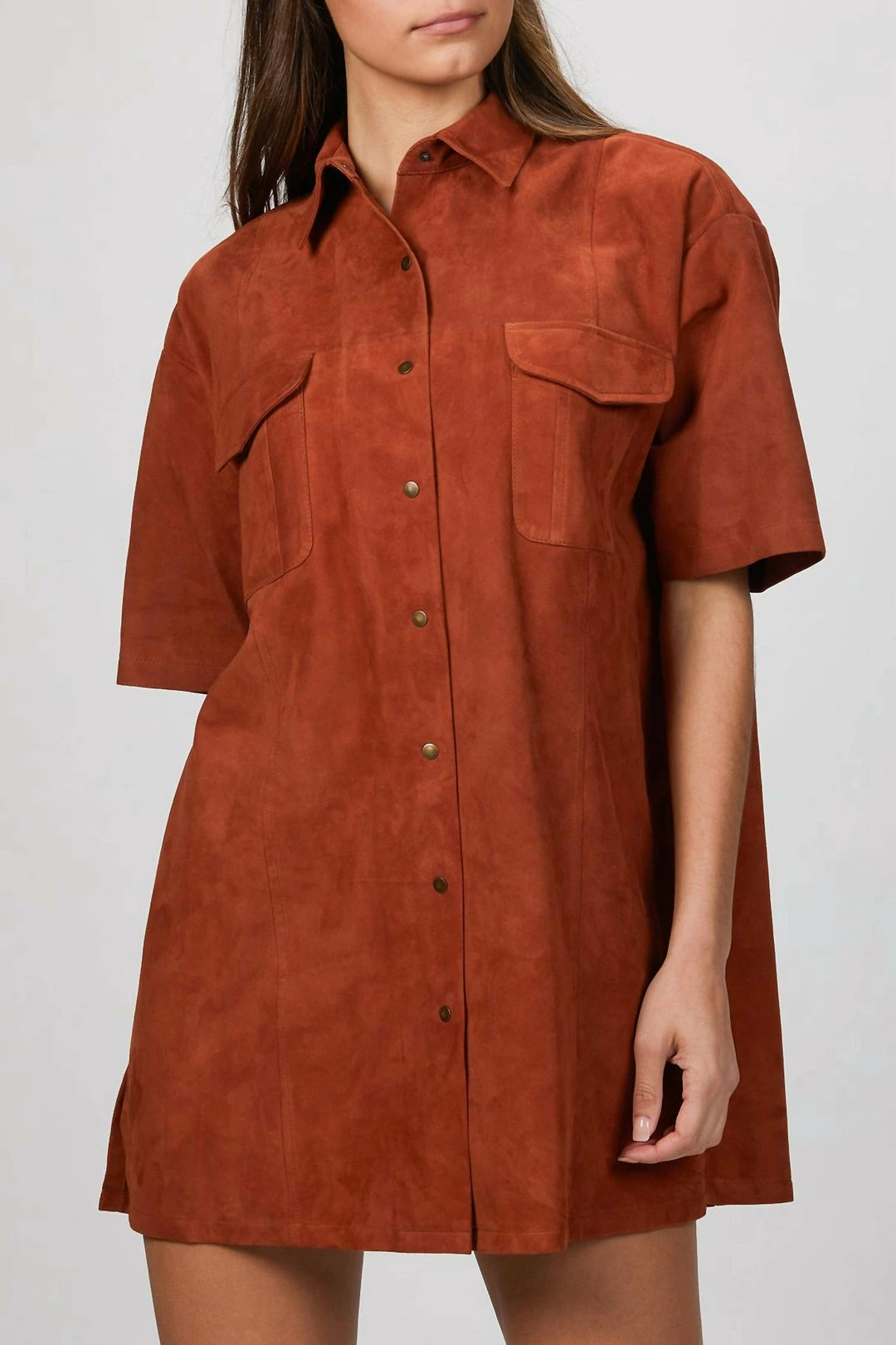 This shirt dress has been made in Turkey from supple suede and has two flap pockets at the chest. Style yours with heeled sandals or sneakers.Fabrication – 100% LambskinCare – Dry cleanUS SizingEllise is wearing size US 0
